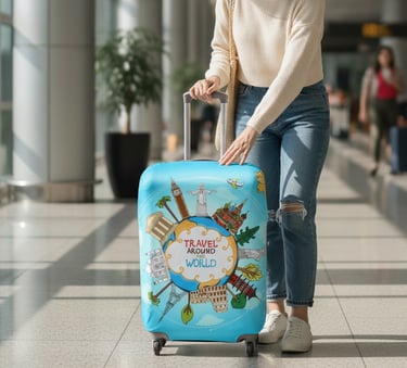 Gunakan Sarung Koper Custom Elastis dan tentukan desain sesuai kebutuhan perjalanan Anda.