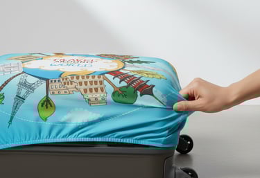 Bahan elastis mengikuti bentuk koper, memberikan pas dan nyaman.